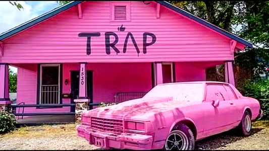 A neon pink sign reading 'GOOD VIBES' in a casual font, set against a dark background. This image suggests a branded merchandise item from an OnlyFans creator named Yur from Texas.