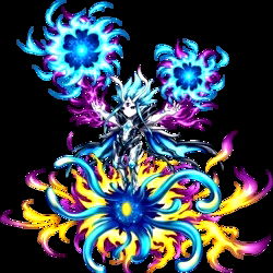 An anime-style character with vibrant blue, purple, and green colors, featuring an intricate design with multiple arms and legs. The central figure is surrounded by a floral or sunburst pattern. Yurikoyamashita is a model character designed in a style that includes elements of nature and fantasy.