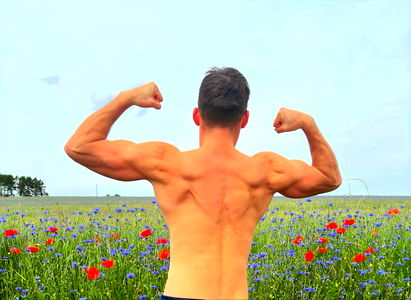A young male model from the Czech Republic is shirtless in swimming trunks. His fit physique and short hair make for a captivating image.