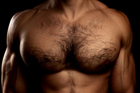 This is a high-resolution photograph, taken indoors, illustrating a man leaning against a wall. He is in a casual stance, one elbow bent, his hand resting on his shoulder. His other arm is extended, holding a mobile phone. The man's muscular build is evident in the definition of his chest, arms, and neck. The detailed texture of his skin is visible, highlighting the contours of his muscles, particularly around his elbow, shoulder, and wrist area. The wall behind him serves as a plain, neutral backdrop, emphasising the man's figure. The lighting in the room casts subtle shadows, enhancing the depth of the scene and highlighting the man's physical features. His focused gaze on the mobile phone suggests he is engrossed in an activity, possibly reading a message or browsing the internet. The image exudes a relaxed and casual atmosphere, capturing a candid moment of modern life.